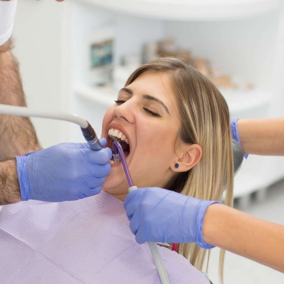 Es una opción para aclarar de manera uniforme el tono de tus dientes y eliminar manchas sin dañar su estructura, así podrás lucir una gran sonrisa.